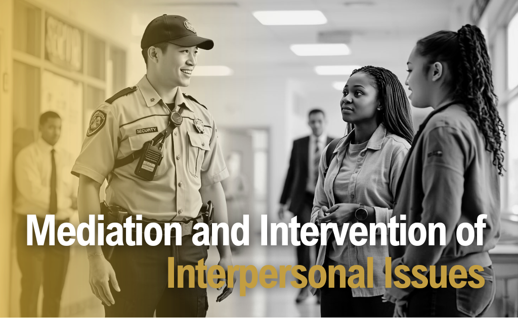 This module provides students with the foundational knowledge and practical techniques necessary to recognize interpersonal issues and respond with professionalism and confidence. Students will explore the principles of mediation and conflict resolution, learn to identify behavioral and situational indicators of emerging disputes, and apply structured intervention strategies designed to reduce tension and prevent escalation.